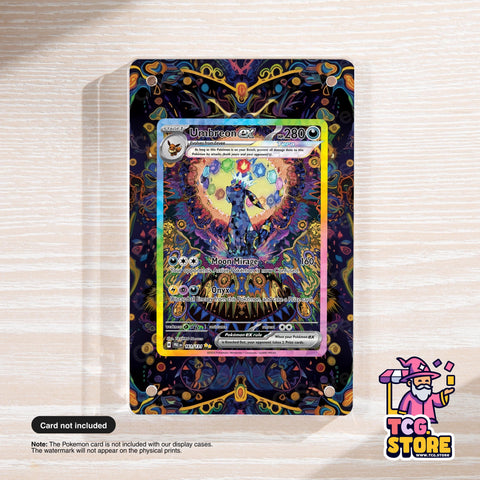 Our Extended Artwork Pokémon Display Cases are designed to complement specific Pokémon cards mimicking their style, backgrounds, and vibe to create an immersive, full-art look without altering the card itself. Whether you’re displaying a favorite raw pull or building a themed collector wall, these are made for collectors who want to elevate their setup.